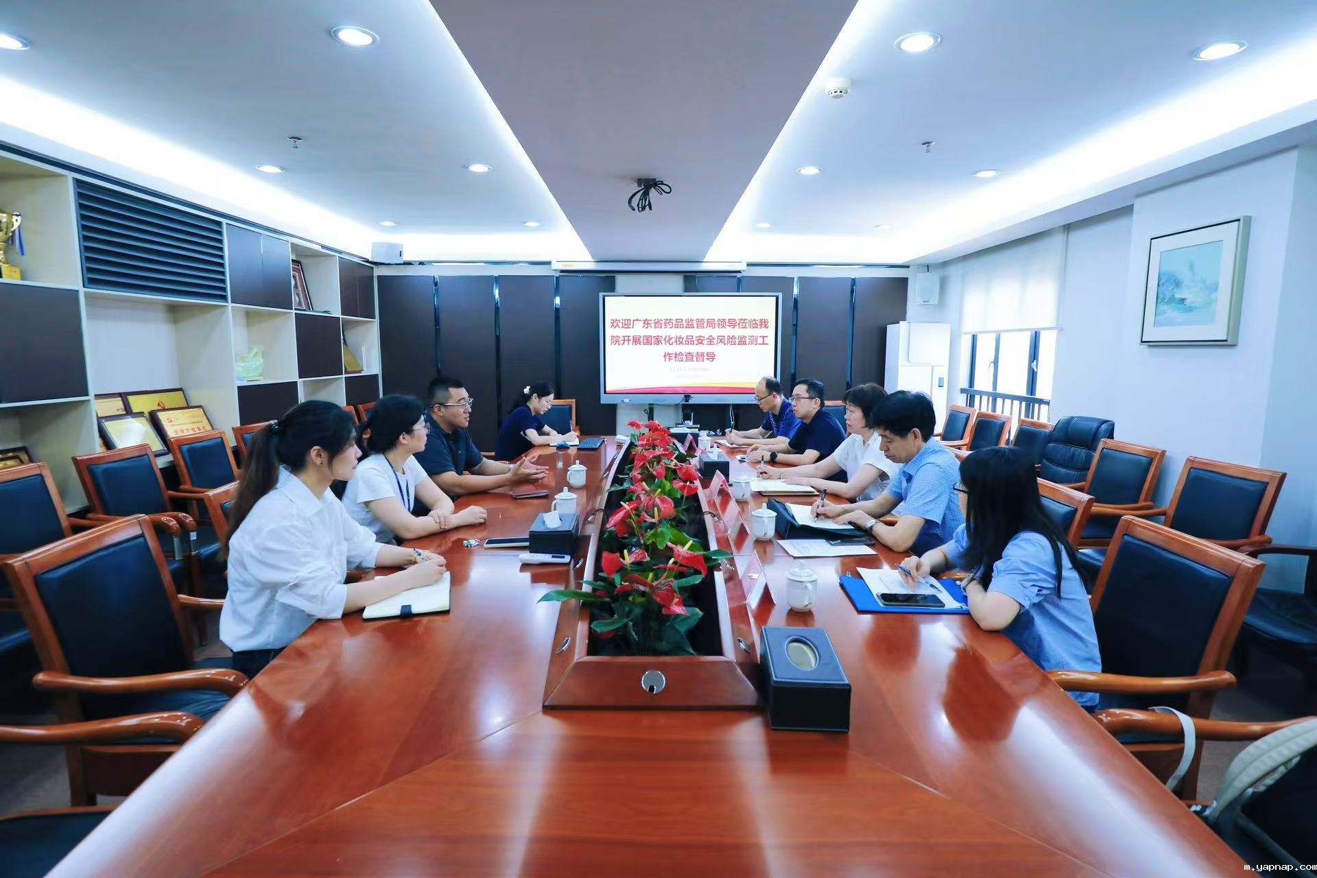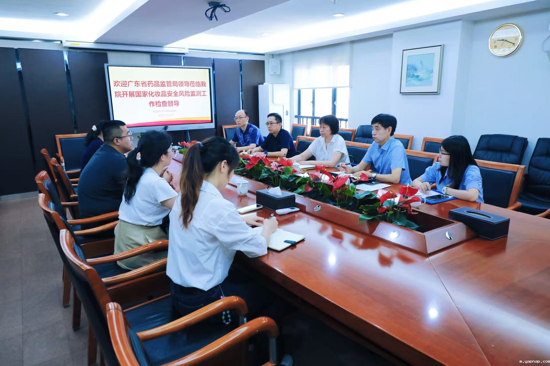 2025 年 7 月 31 日,广东省药品监督管理局、广东省药品检验所领导一行莅临我院,针对本年度国家化妆品安全风险监测工作开展检查督导。本次督导会议的核心议题在于总结第一批次已完成的预实验任务,并听取尚未开展任务的相关汇报,旨在全面掌握工作进展、规范监测流程,切实保障化妆品安全风险监测工作的质量与效率。