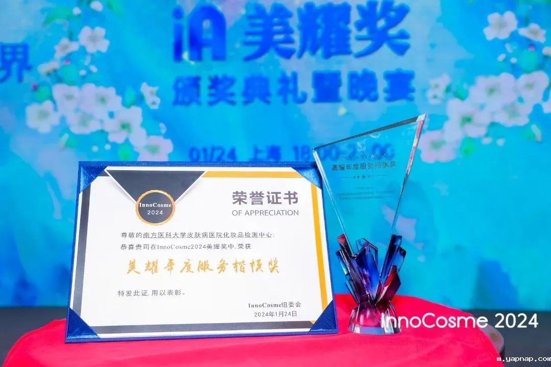 1月25日,由InnoCosme组委同期发起的“InnoCosme Awards 美耀奖”公布获奖名单,悠米游戏中心安卓版化妆品检测中心荣获美耀年度服务楷模奖,颁奖典礼暨晚宴在上海杨浦区隆重举行。