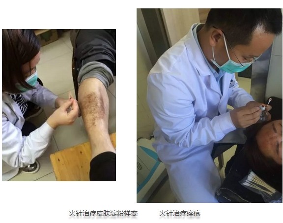 边疆地区条件艰苦、缺医少药,但这正为中医的发展提供了机遇,中医就是在物质匮乏的原始社会,通过人与自然的斗争逐步发展起来的。中草药取之于自然,用之得当,则疗效显著、价格低廉,且较少副作用,但鉴于培训中医师时间较久,我决定从上手较快的中医外治入手。外治疗法治疗皮肤病,不仅疗效好、费用低,而且起效快、安全性高,往往具有意想不到的效果,有些疗法可以教会患者,回家操作,有些疗法1或2周才需复诊一次,省去了来回奔波和请假的麻烦。例如火针,是从古代砭石疗法发展而来,用于消肿排脓,后来逐渐发展到治疗白癜风、银屑病、带状疱疹、斑秃、结节性痒疹、神经性皮炎、扁平疣、寻常疣、跖疣等众多皮肤病,1-2周1次,多数一次即可见效,深受广大患者欢迎。