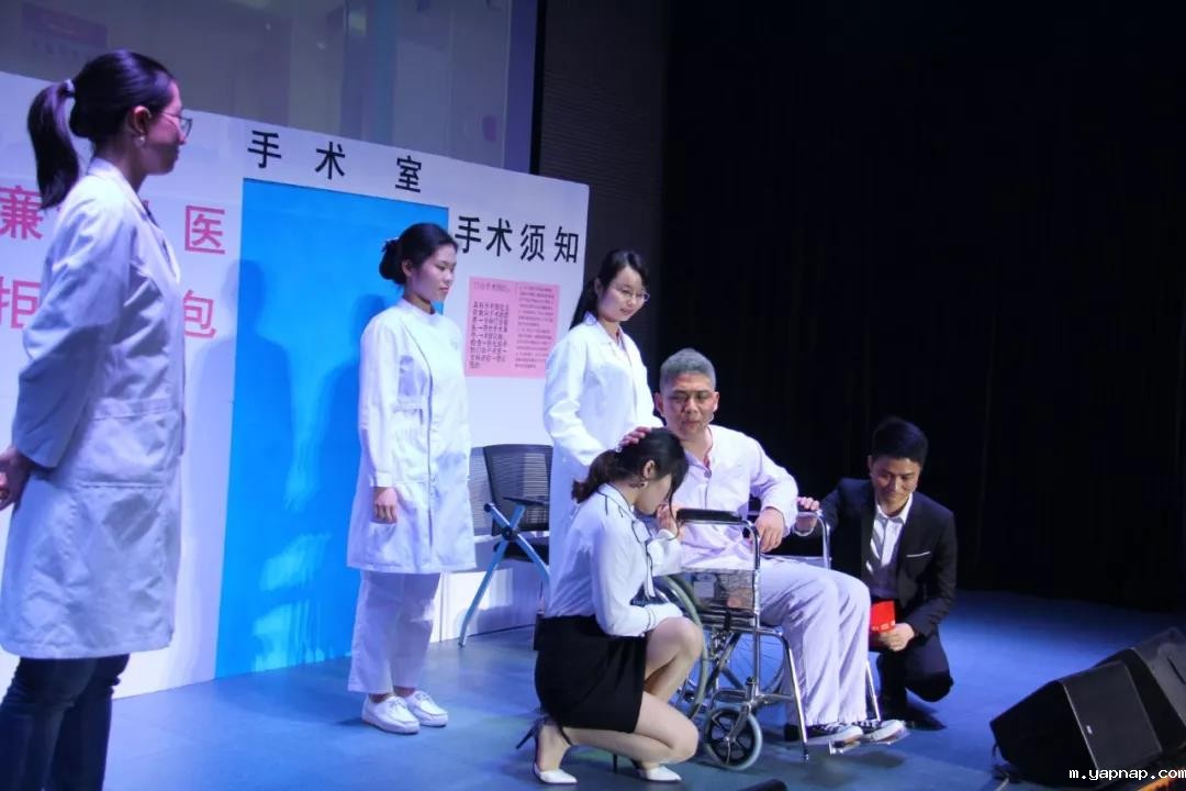 科教科、设备科、纪检监察室、研究生联合演出小品《365个祝福》则在带给观众更多的笑声同时,讲述了医生廉洁自律,全心全意为患者服务的暖心故事。