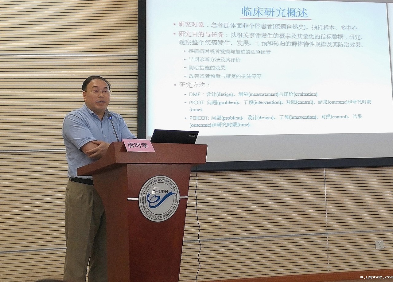 为进一步提升我院临床科研水平, 2019年3月31日上午,我院“临床科研设计、测量与评价”培训班在医院13楼学术报告厅成功举办。本次培训班特邀南方医科大学公共卫生学院统计学系周基元教授、流行病学系毛琛教授,我院双聘教授唐时幸、性防科副主任唐卫明博士进行授课。