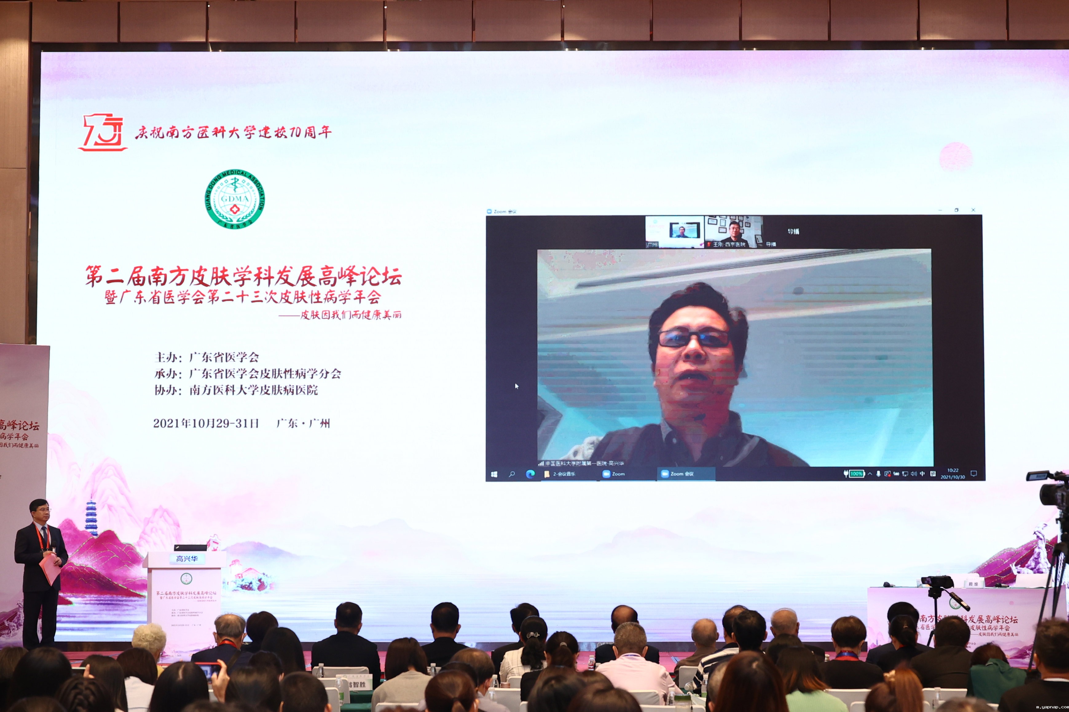 中华医学会皮肤性病学分会候任主委、中国医师协会皮肤科医师分会候任会长、中国医科大学附属第一医院副院长高兴华教授通过视频对大会的召开表示祝贺