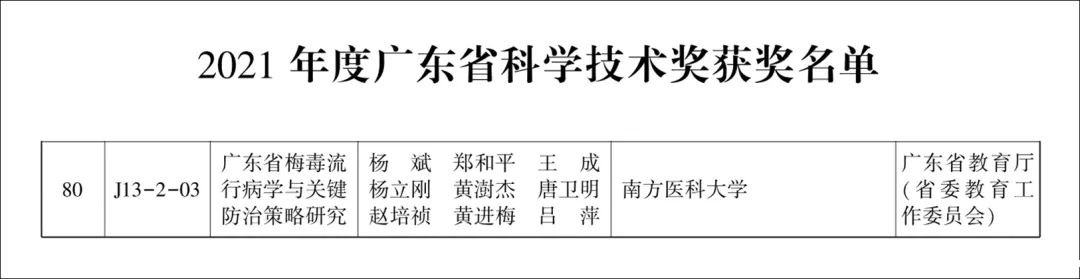 近日,广东省科技创新大会在广州召开,会上颁发了2021年度广东省科学技术奖。我院杨斌教授团队自主完成的《广东省梅毒流行病学与关键防治策略研究》项目荣获广东省科学技术进步奖二等奖!