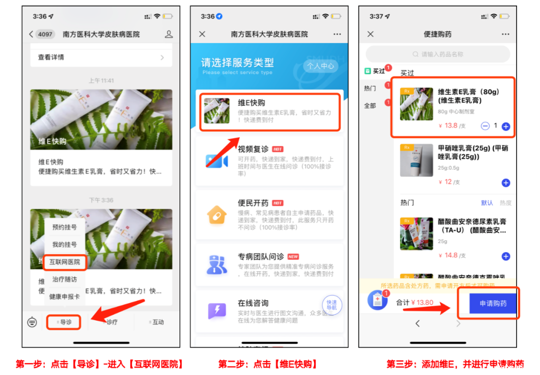 日前,我院“回馈时刻”活动上线后,许多读者在后台留下了,使用南皮维E的真情实感的评论 在此推荐的维生素E乳膏是我院自制润肤乳,会在成分上做“减法”,它的主要成分为维生素E、甘油等,都是最基础的保湿成分。和市面上一些保湿产品相比,医院自制润肤乳对敏感皮肤更“友好”,不容易引起过敏,又能满足日常保湿需求。每年这个季节,很多患者来看病,因为入秋之后空气干燥,使得皮肤容易丢失水分,脱屑、瘙痒。对于这类患者,治疗以保湿、修复皮肤屏障为主,医生通常也会开维生素E乳膏。因其成分简单、刺激小,对老人、小孩子也很友好,能缓解不适。不少家属给老人、孩子使用后,都会给推荐给其他人。涂得不够厚,保湿效果会受影响。秋季身体保湿,几天就会用完一支,市面在售多数品牌润肤乳动辄几百上千,这涂的不是润肤乳,是钱啊!而我院自制的维E乳膏,一瓶80克,仅13.8元!!!比市面上中低端护肤乳都便宜,却享受药品级的皮肤护理,用起来自然性价比“爆表”,完全不用担心费钱。维生素E乳膏质地略微厚重,为乳白色膏体,涂抹后很容易推开,吸收也很快,不粘腻、不油腻,并且有一点淡淡的清香,闻着很舒服。经测试,涂抹乳膏后,涂抹区域含水量大幅增加,即时补水、保湿的功效很不错,而且保湿时间较长。在使用维生素E乳膏后的不同时段,我们用皮肤水分测试仪对保湿效果进行了测试效果如下(测试部位:右脸颊):从测试结果来看,涂抹后,脸颊的含水量大幅增加,即时补水、保湿的功效很不错,而且保湿时间较长。拥有维E乳膏的“绿色通道”每逢秋冬换季,我院维生素E乳膏的需求量大大增加,为了方便广大患者群众,我院已开设“维生素E乳膏快速开方(处方)”线上、线下绿色通道,随时满足各地群众的护肤需求.悠米游戏中心安卓版(广州市越秀区麓景路2号)门诊楼二楼设有便民开药门诊,现场即可快速挂号、开处方、缴费、取药。2关注“悠米游戏中心安卓版”官方微信公众号,按以下步骤开具处方如有疑问,可在医院官方公众号(悠米游戏中心安卓版)后台留言咨询,小编会尽快回复您.