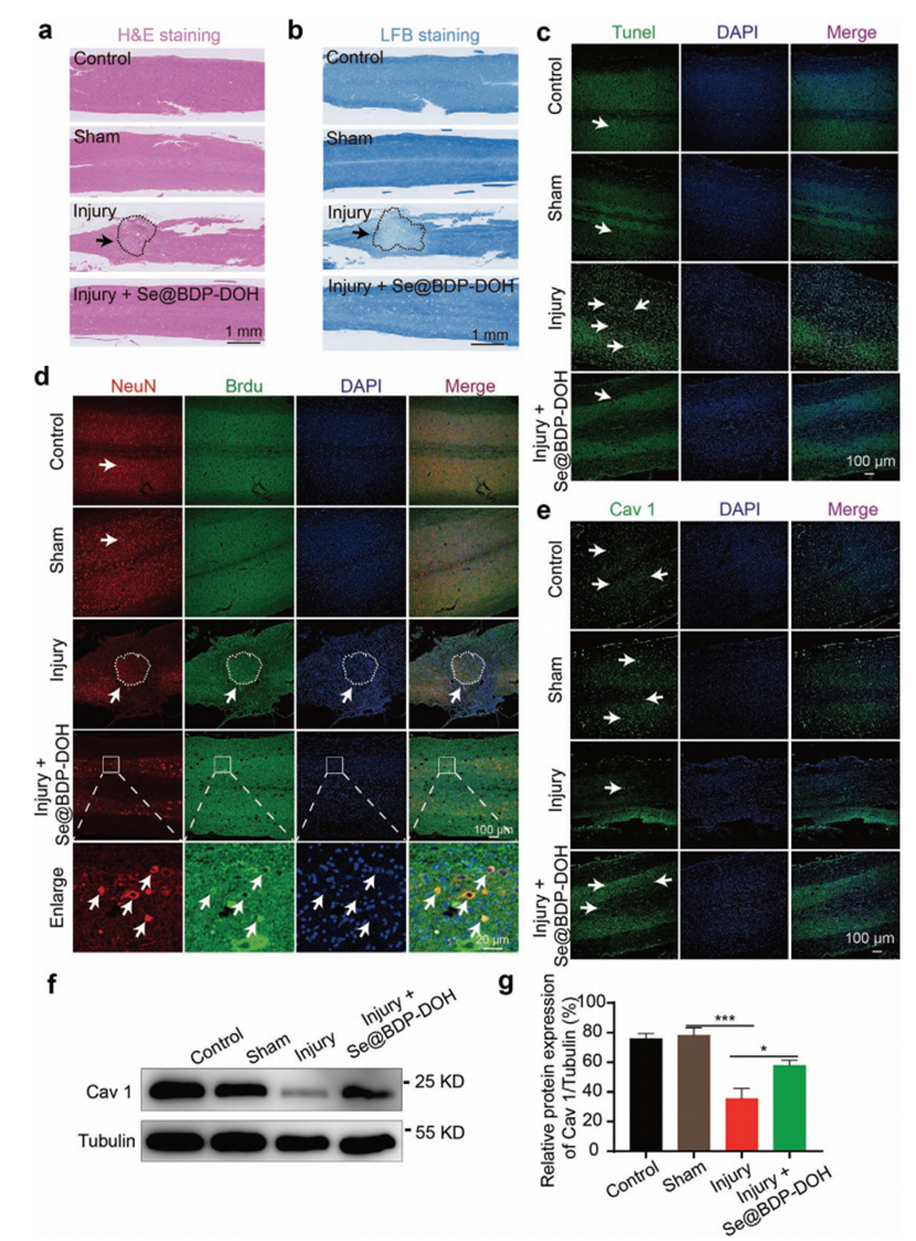 1水平,进一步重塑脊髓损伤氧化还原微环境。此外,通过运动评分、足迹等实验评估可以有效促进脊髓损伤小鼠运动功能的恢复,这主要归归因于硒基质纳米酶可以有效促进神经元的存活、抑制神经胶质瘢痕的形成和增强eNSPCs的募集来促进脊髓组织的再生。总之,本研究为阐明在脊髓损伤的急诊治疗和严重程度评估中的氧化还原状态,同时促进功能恢复和组织再生相关研究提供了一个可靠的工具和设计策略。