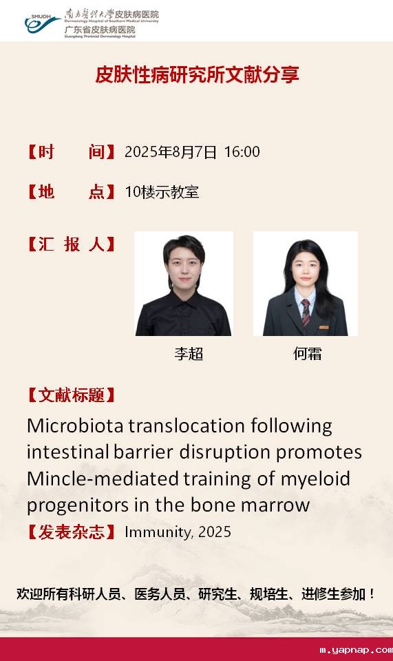 本周皮肤性病研究所由李超/何霜进行文献汇报,