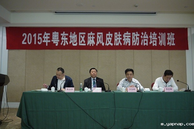 为提高我省麻风皮肤病临床诊疗水平,加强防治队伍能力建设,省皮防中心于2015年4月23-25日在揭阳市举办了一期粤东地区麻风皮肤病防治培训班。来自粤东地区11个地市及县区的皮防(慢病)机构的从事麻风病、皮肤病临床诊治工作的一线医师和揭阳市区综合医院的皮肤科医师,共100余人参加了此次培训。培训班开幕式由省皮防中心副主任郑道城主持,中国麻风防治协会会长张国成教授和揭阳市卫计局局长李春明莅临并致辞。